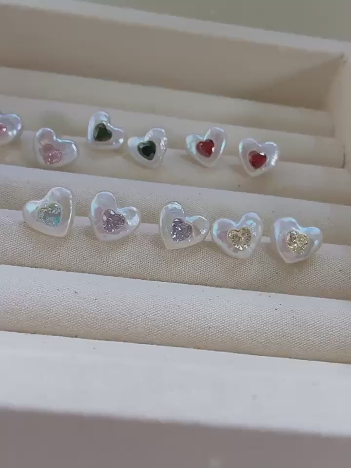 These baroque heart-shaped pearl earrings combine the natural elegance of uniquely shaped pearls with the sparkle of zircon accents. Crafted with S925 sterling silver and plated in white gold, they offer a refined and timeless look. Perfect for adding a touch of sophistication to any outfit, these earrings balance classic charm with contemporary design.