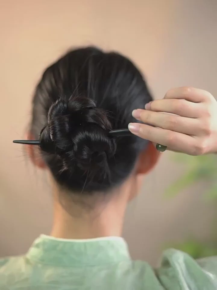 Adorn your hair with the grace of ancient royalty with this exquisite hairpin, featuring vibrant jade set in a delicate design that evokes the serene beauty of a forest in spring.