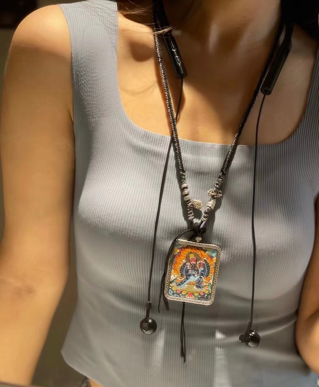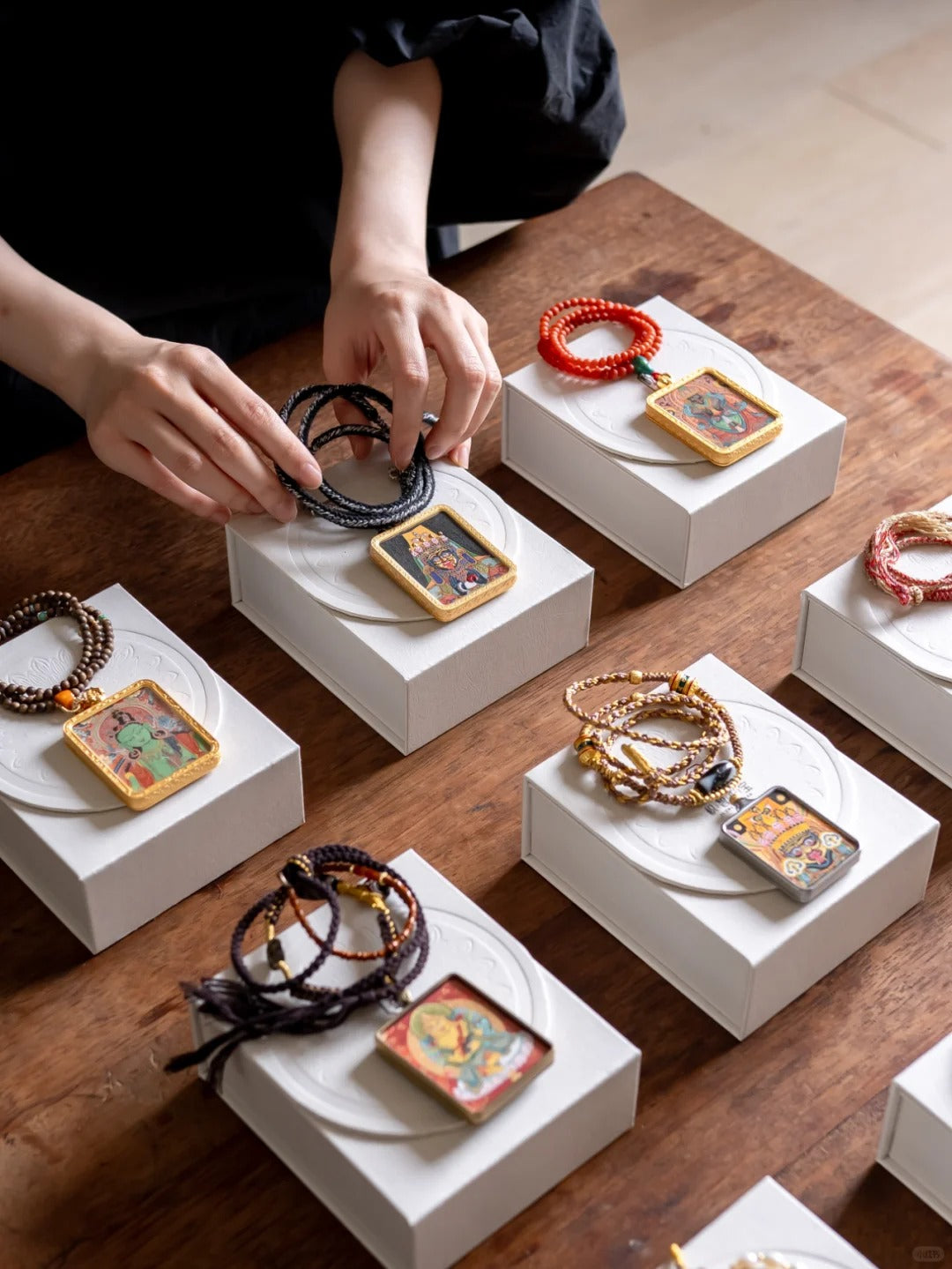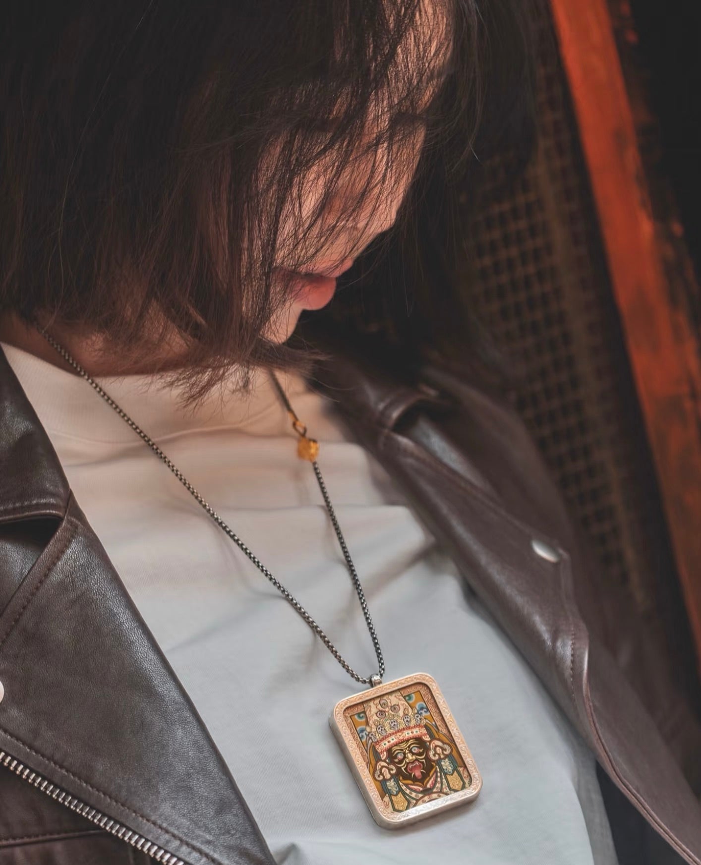 Inspired by the timeless beauty of Tibetan Thangka paintings, each necklace in this collection is a miniature masterpiece. Traditionally, Thangka art was created as a form of meditation, carrying prayers, teachings, and blessings through its intricate details.