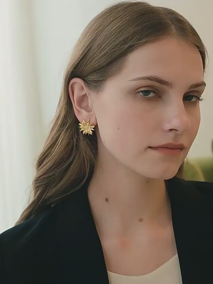 Add a bit of sunshine to your outfit with our quirky Sunflower Earrings! Made with gold plated s925 sterling silver, these handmade earrings are the perfect way to add a touch of playful charm and elegance to any look. (Plus, they won't wither or die like real sunflowers!)
